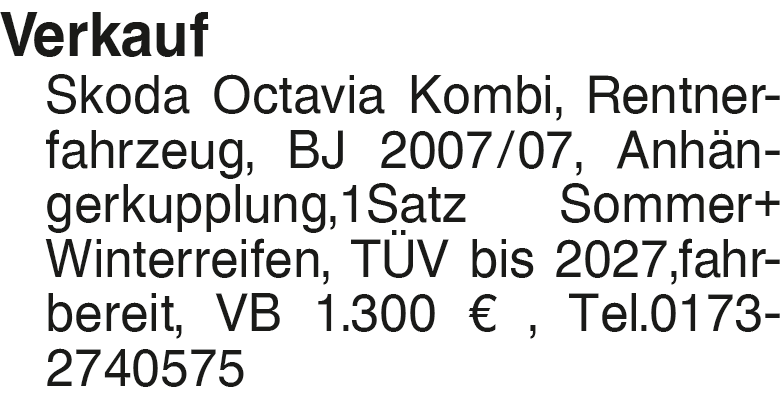 Anzeige vom 28.2.2026 in der Rubrik "Skoda"