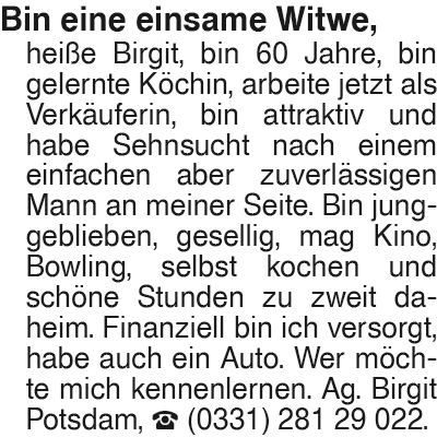 BP B Bin eine einsame Witwe,