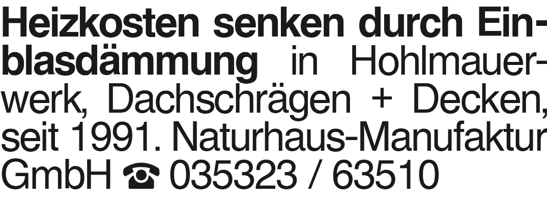 Heizkosten senken durch Einblasdämmung Heizkosten senken durch Einblasdämmung in Hohlmauerwerk, Dachschrägen + Decken, seit 1991. Naturhaus-Manufaktur GmbH 035323 / 63510Das könnte Sie auch interessieren