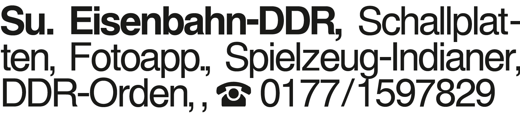 Su. Eisenbahn-DDR, Schall Su. Eisenbahn-DDR, Schallplatten, Fotoapp., Spielzeug-Indianer, DDR-Orden, , 0177/1597829Das könnte Sie auch interessieren