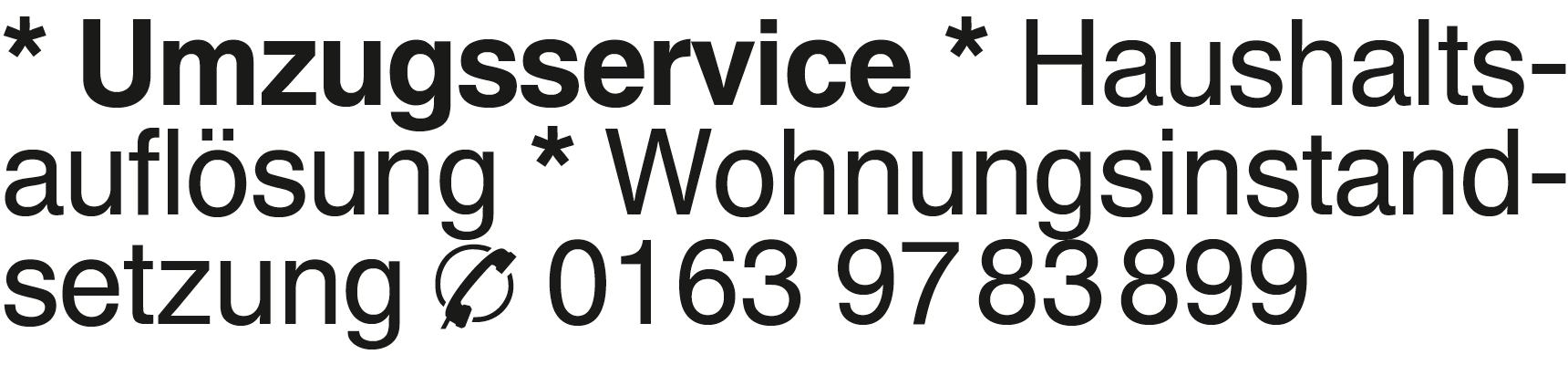 Umzugsservice, Haushaltsauflösung Umzugsservice Haushaltsauflösung Wohnungsinstandsetzung 0163 97 83 899Das könnte Sie auch interessieren