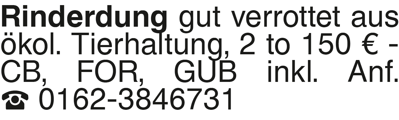Rinderdung gut verrottet Rinderdung gut verrottet aus ökol. Tierhaltung, 2 to 150 EUR - CB, FOR, GUB inkl. Anf. 0162-3846731