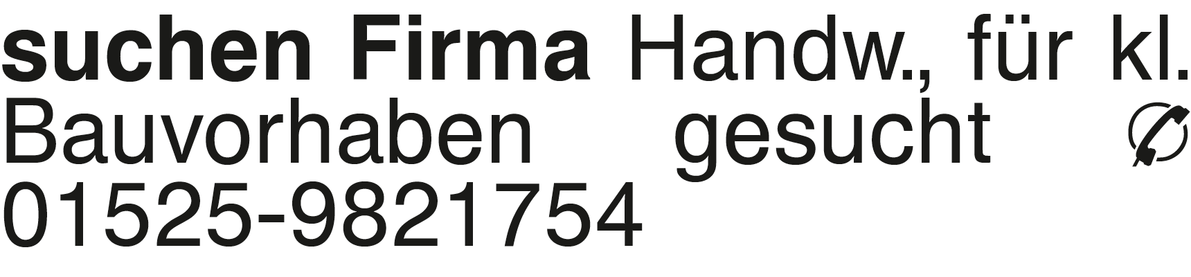 suchen Firma Handw., für Handw., für kl. Bauvorhaben gesucht Tel. 01525-9821754Das könnte Sie auch interessieren