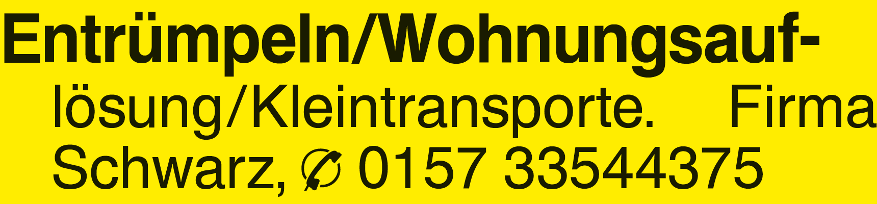 Entrümpeln/Wohnungsauflö- Entrümpeln/Wohnungsauf- lösung/Kleintransporte. Firma Schwarz, 0157 33544375