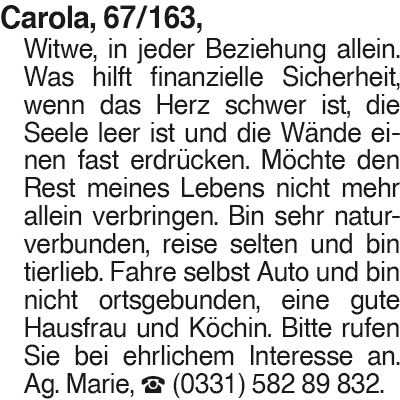 Erscheinungsdatum: Anzeige vom 21.3.2026 in der Rubrik "Ehe-/ Partnervermittlungen"