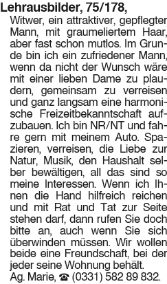 Erscheinungsdatum: Anzeige vom 21.3.2026 in der Rubrik "Ehe-/ Partnervermittlungen"