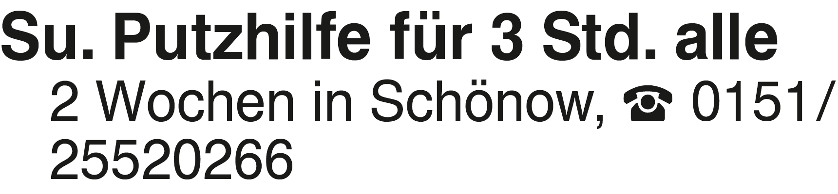 Su. Putzhilfe für 3 Std. Su. Putzhilfe für 3 Std. alle 2 Wochen in Schönow, 0151/25520266Das könnte Sie auch interessieren