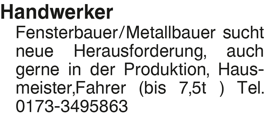 Rubrik: Stellengesuch Handwerker