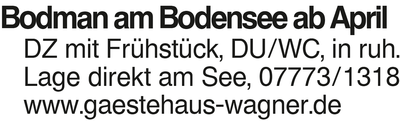 Bodman - Gästehaus Wagner Bodman am Bodensee ab April DZ mit Frühstück, DU/WC, in ruh. Lage direkt am See, 07773/1318 www.gaestehaus-wagner.deKontakt