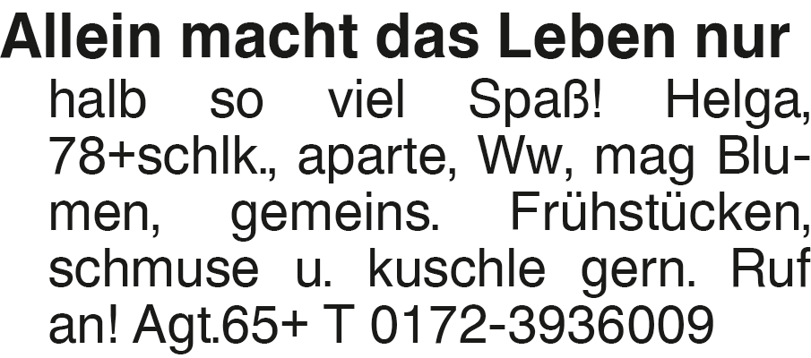 Anzeige vom 11.4.2026 in der Rubrik "Sie sucht Ihn"