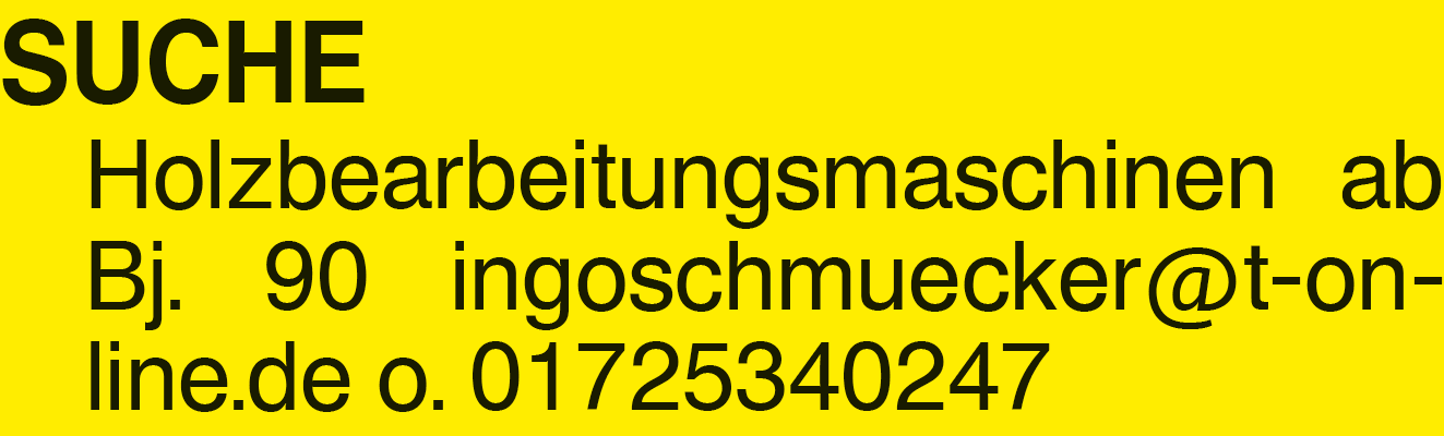 SUCHE Holzbearbeitungsmas Holzbearbeitungsmaschinen ab Bj. 90 ingoschmuecker@t-online.de o. 01725340247 ingoschmuecker@t-online.de