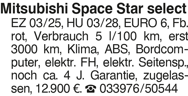 Anzeige vom 18.4.2026 in der Rubrik "Mitsubishi"