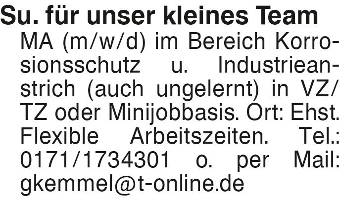 Erscheinungsdatum: Anzeige vom 18.4.2026 in der Rubrik "Stellenangebot Handwerker"