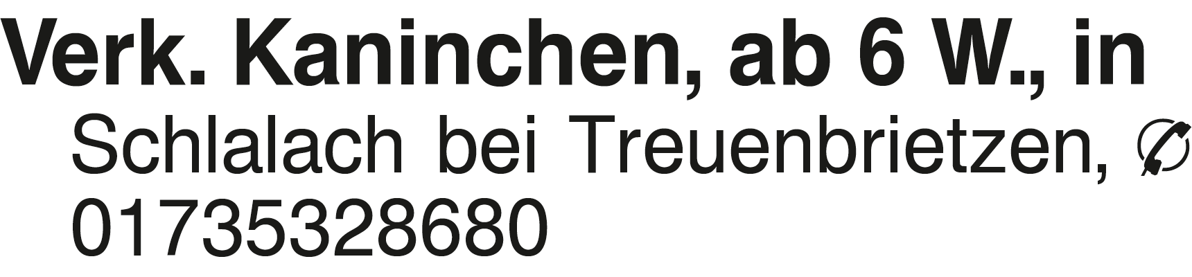 Verk. Kaninchen, ab 6 W., Verk. Kaninchen, ab 6 W., in Schlalach bei Treuenbrietzen, 01735328680Das könnte Sie auch interessieren