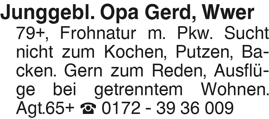 Erscheinungsdatum: Anzeige vom 18.4.2026 in der Rubrik "Er sucht Sie"
