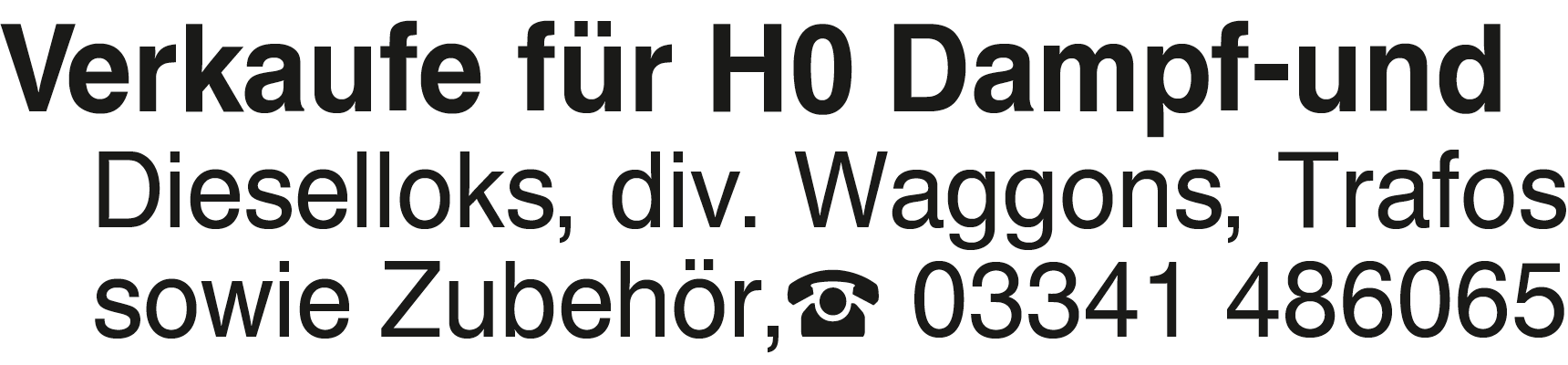Verkaufe für H0 Dampf-und Verkaufe für H0 Dampf-und Dieselloks, div. Waggons, Trafos sowie Zubehör, 03341 486065Kontakt