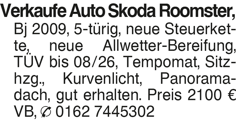Anzeige vom 25.4.2026 in der Rubrik "Skoda"