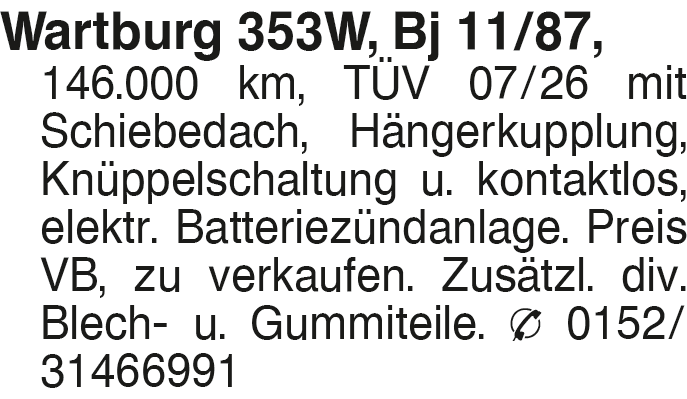 Wartburg 353W, Bj 11/87, ,