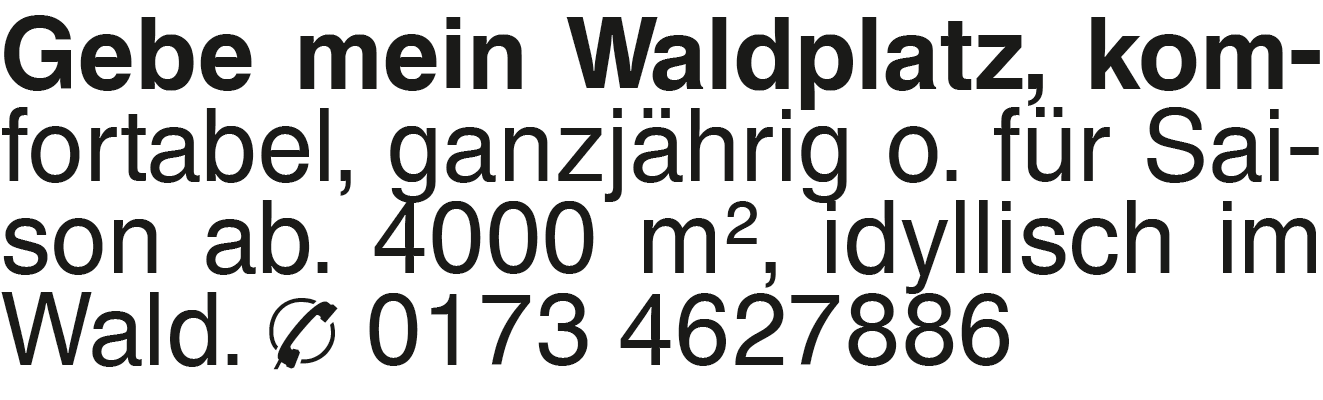 Gebe mein Waldplatz, komf ,